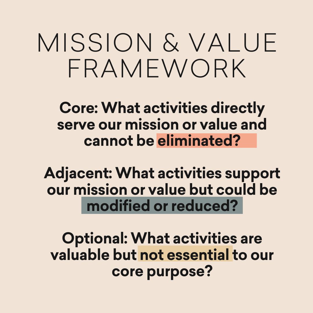 Your mission is your guiding principle when everything else feels uncertain. When facing cuts or changes, filter every decision through this question: What keeps us closest to our core mission versus what's "nice to have"?
